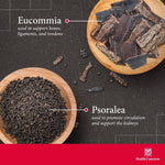 Ingredients include: Eucommia Bark, Loranthus Stem, Psoralea Fruit, and more. Please see the product label for a complete list of ingredients and suggested use.