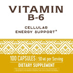 Introducing Nature's Way Vitamin B-6, the perfect sidekick for your wellness journey. With 50 mg of pure, unadulterated vitamin B-6 per serving, this supplement is like a personal trainer for your metabolism, energy, and nervous system health. Whether you're a busy bee or a couch potato, B-6 is here to support you. Just one tablet a day, and you're on your way to feeling fabulous!