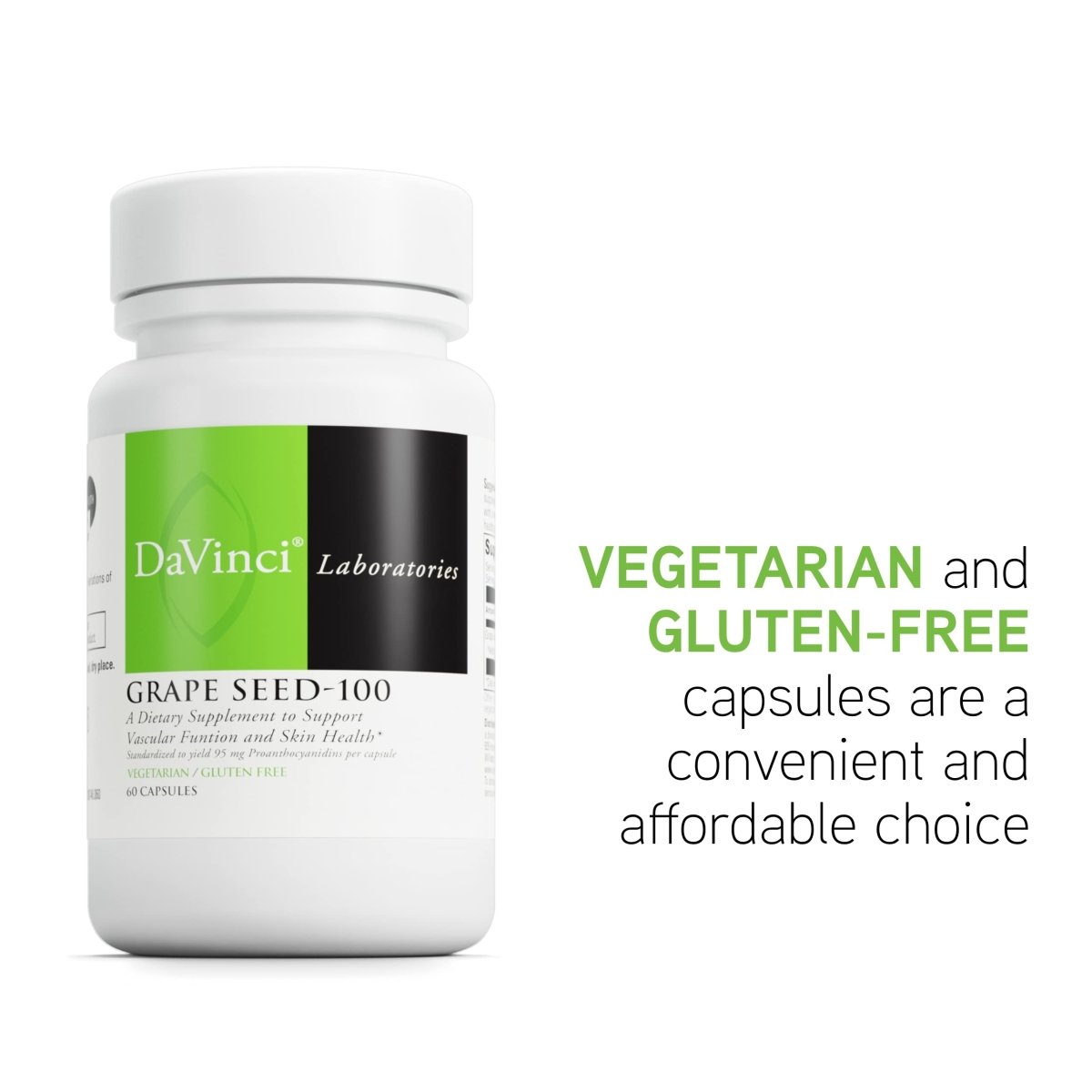 DaVinci Labs Grape Seed-100 - Dietary Supplement to Support Immune System, Vascular Function and Healthy Skin* - With 100 mg Grape Seed Extract per Serving - Gluten-Free - 60 Vegetarian Capsules