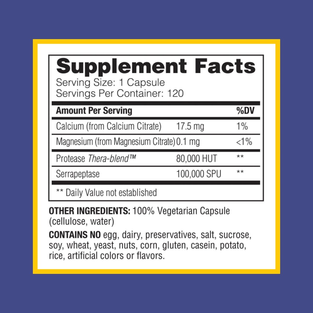Introducing Enzymedica's SerraGold, the supplement that’s like your personal orchestra conductor, ensuring your body’s symphony plays in perfect harmony. With 120 capsules of pure brilliance, this natural supplement is the maestro your immune and heart wellness systems have been waiting for. It’s like giving your body a standing ovation from the inside out! Whether you’re recovering from the daily grind or just want your insides to feel as smooth as a jazz saxophonist, SerraGold is your go-to. It's gluten-free, vegan, and void of any artificial anything—because we believe your body deserves the royal treatment, not a cheap matinee!