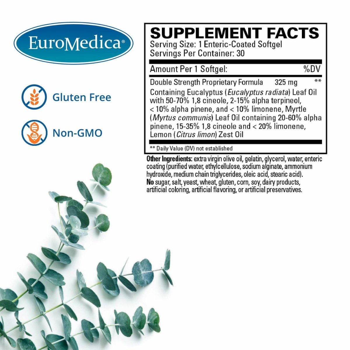 Introducing the Euromedica Sinutol Extra Strength! This isn't your grandma's sinus remedy; it's a powerhouse of eucalyptus and myrtle packed into a tiny, enteric-coated softgel. Imagine your sinuses throwing a farewell party for congestion while your immune system moonwalks across the dance floor. This supplement is like having a personal bouncer for your respiratory health, keeping unwanted guests (like sniffles and sneezes) at bay.