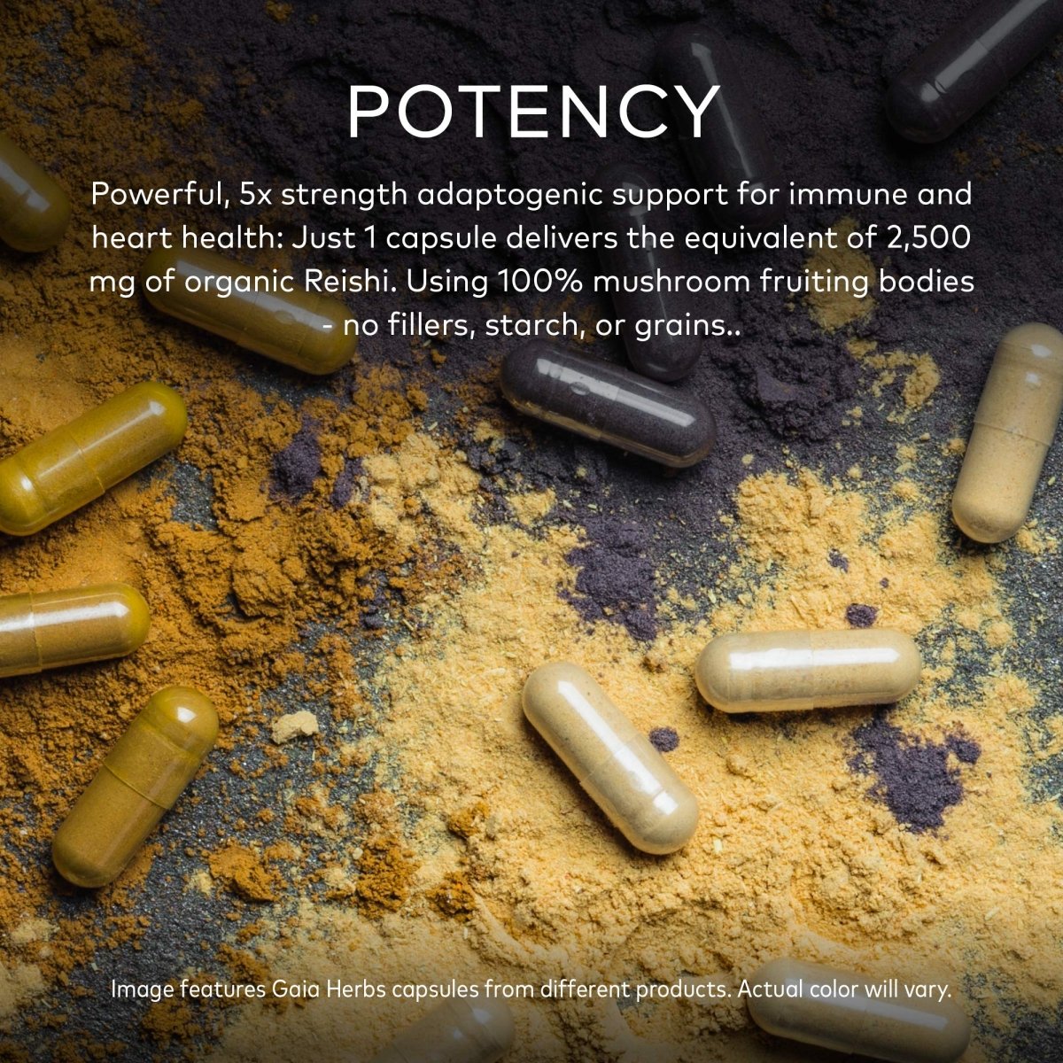 Each capsule is a little hug for your body, lovingly crafted to promote overall well-being with the kind of care your grandma would approve of. Whether you're battling the daily grind or just need a little extra pep in your step, Gaia Reishi Mushroom is your secret weapon. So, pop a cap, and let the ancient wisdom of mushrooms guide you to a more balanced, vibrant life.