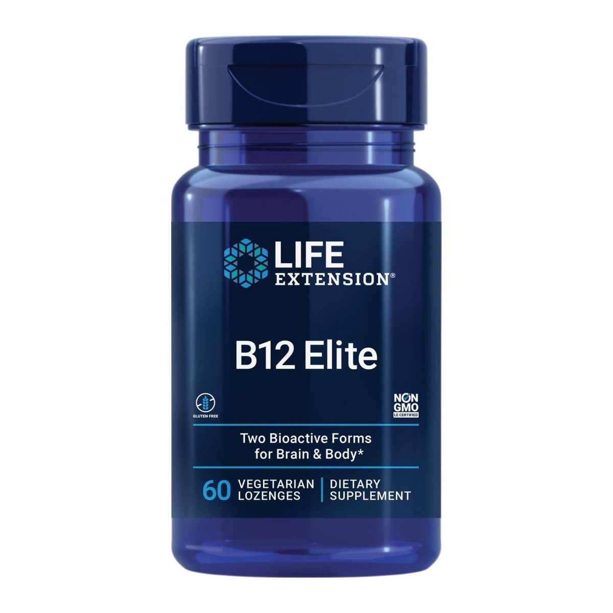 Life Extension B12 Elite, adenosylcobalamin, methylcobalamin, Two Active Forms for Brain Health & Dopamine Production, Non-GMO, Gluten-Free, Vegetarian, 60 lozenges
