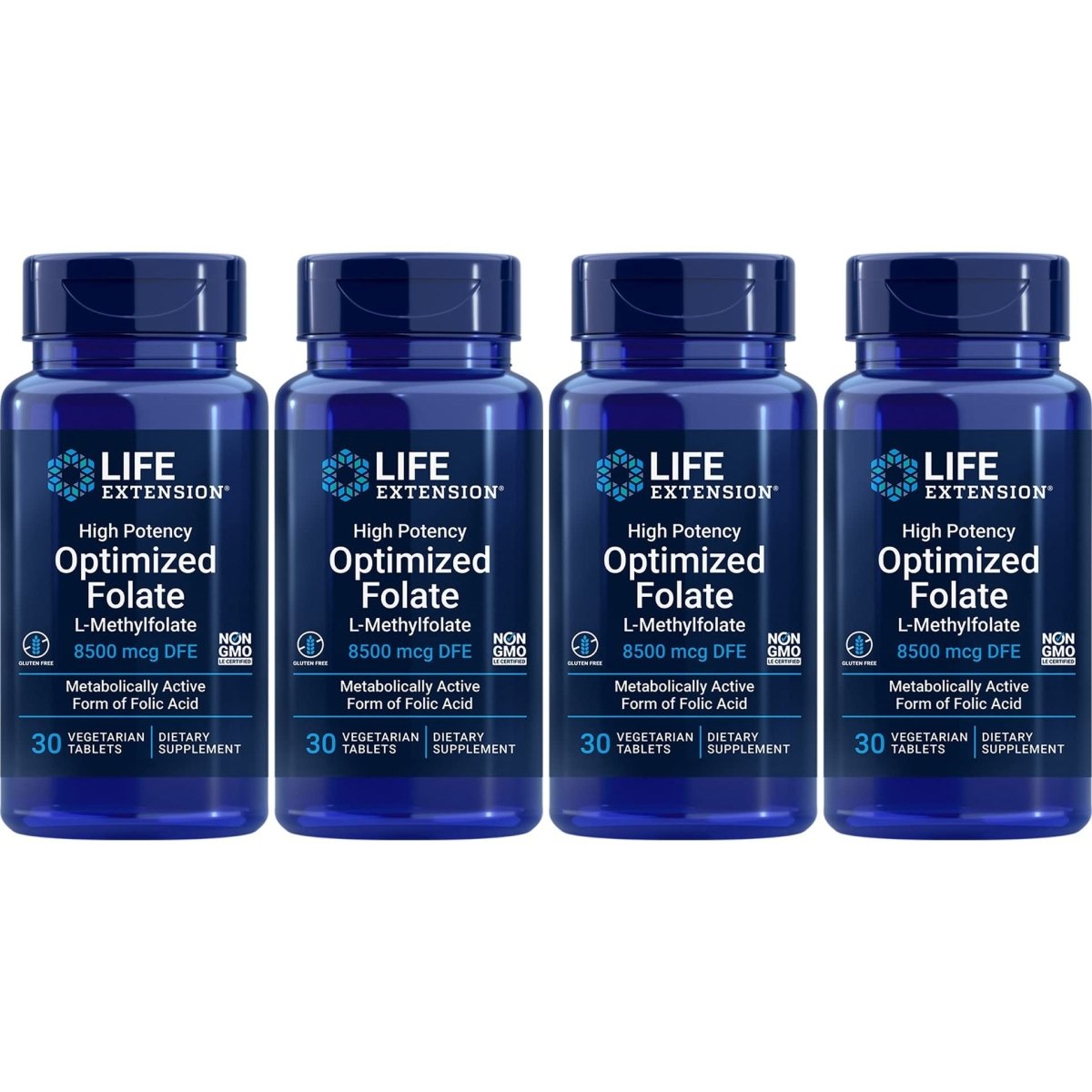 Life Extension High Potency Optimized Folate 8500 mcg DFE, 30 Vegetarian Tablets (Pack of 4)