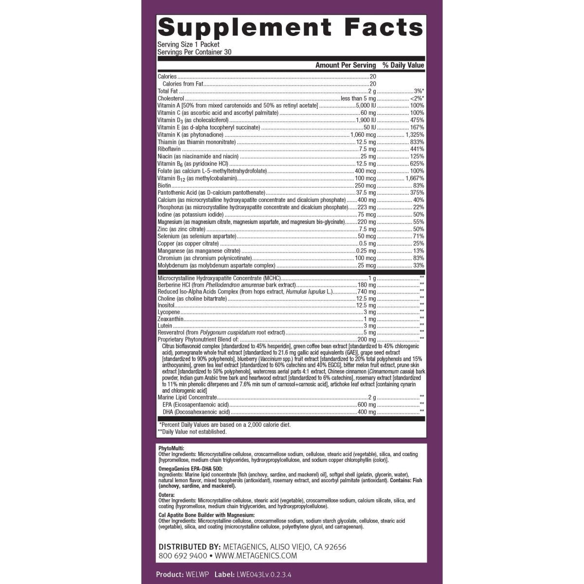 Each packet contains a synergistic blend of vitamins, minerals, and omega-3s, crafted to support the unique nutritional needs of women. Say goodbye to the days of juggling multiple bottles and embrace the simplicity of comprehensive wellness in one convenient packet. With Metagenics, youâre not just aging gracefully; youâre living gloriously.