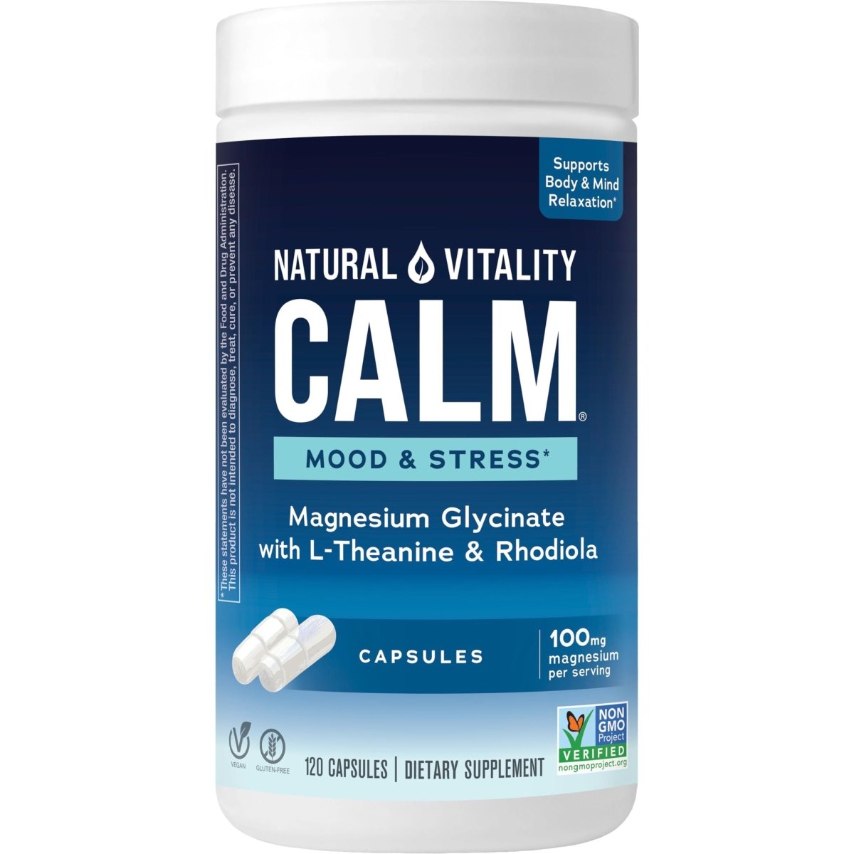 Natural Vitality Calm® Mood & Stress Relief Capsules - because who has time for stress when there's a world to conquer? These little magic beans, also known as capsules, are packed with Magnesium Glycinate, your new best friend in the quest for tranquility. Each bottle contains 120 opportunities to say "no, thank you" to stress and "yes, please" to a serene state of mind. It's like having a personal spa day in a capsule. So, why wait for the universe to align when you can align it yourself? Dive into calmness, one capsule at a time.