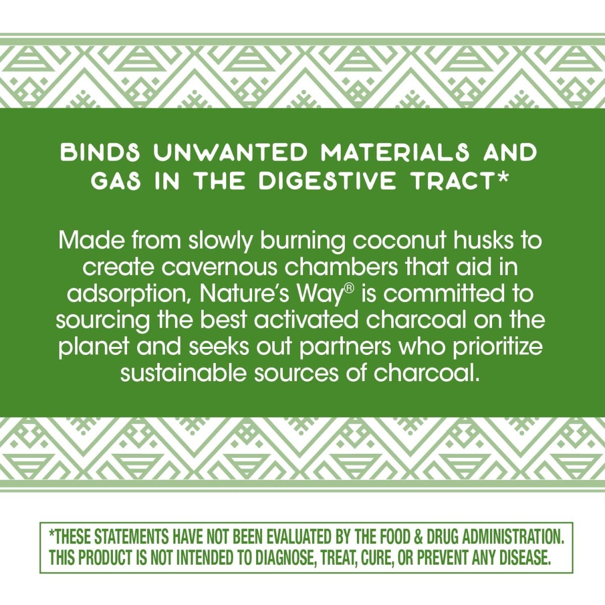 Introducing Nature's Way Activated Charcoal, the little black dress of supplements—always in vogue and ready to make you feel fabulous by binding unwanted materials and gas.* Each serving delivers a potent 560mg of activated charcoal, offering you 360 opportunities to say goodbye to those unsightly bloating moments. Whether it's a lavish dinner or a casual brunch, let this detoxifying dynamo be your secret weapon. Slip it into your wellness routine and strut through life with the confidence of a Hollywood starlet. Because darling, when you feel good, you look good too!