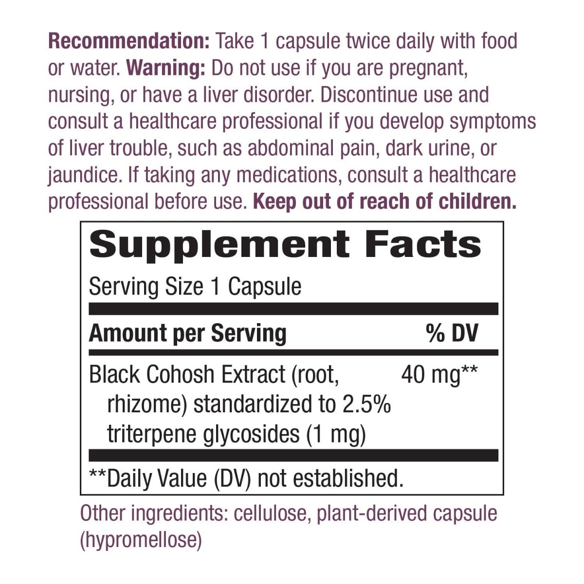 Introducing Nature's Way Black Cohosh, your new best friend for those days when your body's thermostat seems to be on the fritz. Each serving delivers a potent 40mg of Black Cohosh, a traditional herb known for its ability to support women's health through every stage of life. And let's not forget, it's Non-GMO and gluten-free, because who needs unnecessary drama in their supplements? With 120 capsules, you've got a reliable companion that won't run out on you too soon. Embrace the natural way to maintain balance and serenity.