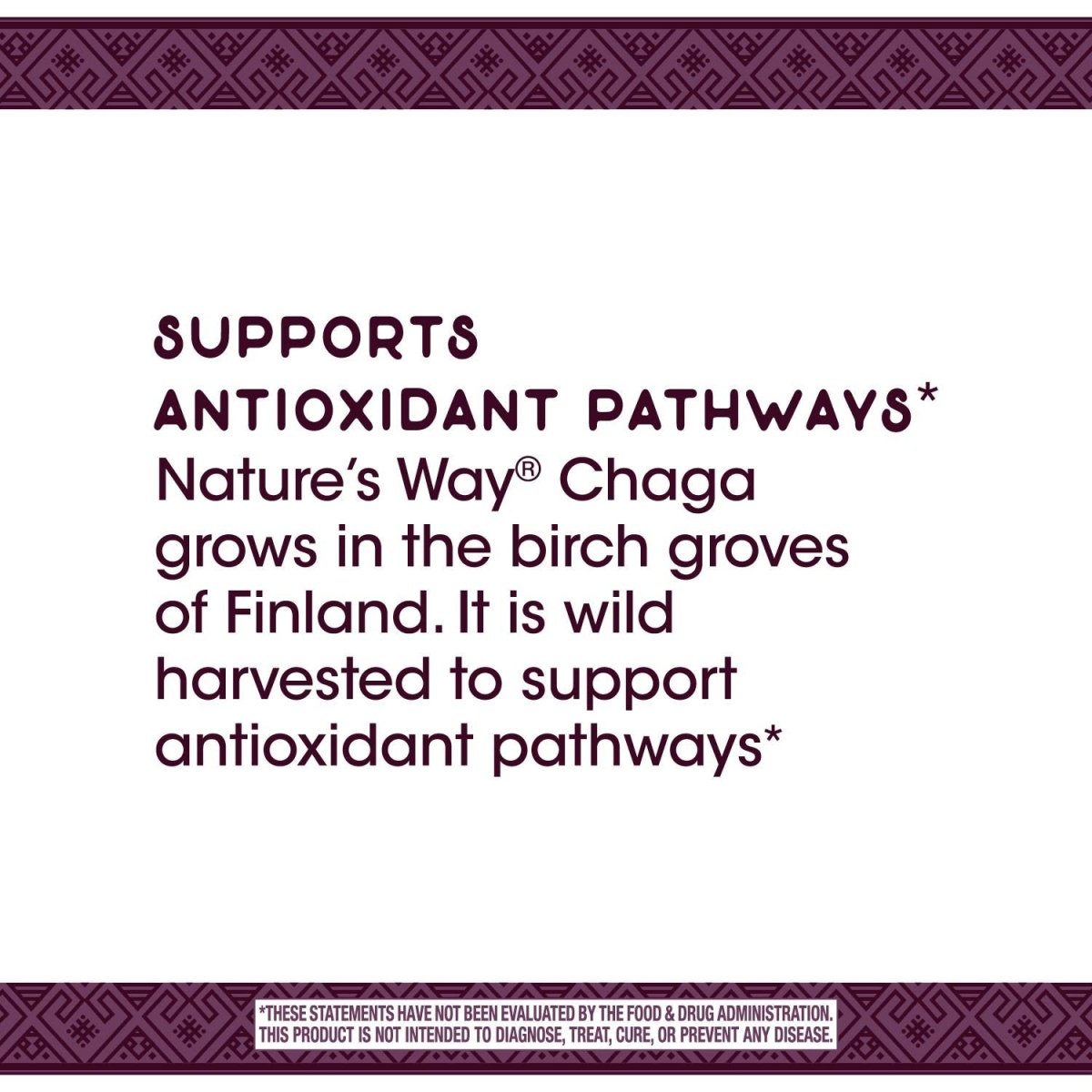 Introducing Nature's Way Premium Extract Chaga, the little mushroom with a big personality! Packed with 480 mg of chaga per serving, these 30 Vcaps are here to support your antioxidant pathways like a true superstar.* Think of it as your body's very own red carpet event, where every cell gets to shine. Chaga has been revered for centuries, and now it's your turn to experience its benefits. So go ahead, give your wellness routine a touch of the extraordinary with Nature's Way. After all, who doesn't want a little more sparkle in their life?