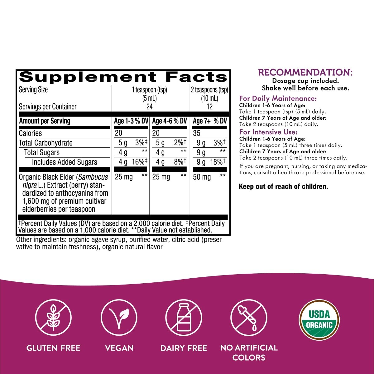 Nature's Way Sambucus Organic Elderberry Syrup for Kids - 4 Fl. Oz - Great Tasting - Gluten - Free - The Oasis of Health