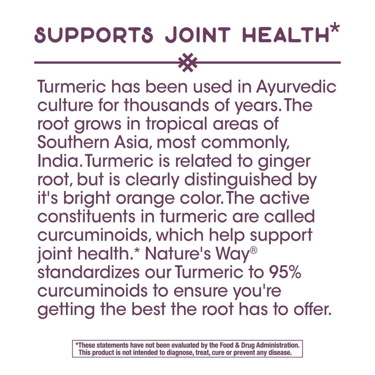 Nature's Way Turmeric Premium Extract — because your joints deserve the best, darling! This isn't just any turmeric; it's a first-class ticket to joint comfort and mobility.* Each serving packs a punch with 500mg of premium turmeric extract, ensuring you get the support you need to keep living your best life. Non-GMO Project Verified, because we know you care about what goes into your body as much as we do. With a generous count of 120 tablets, you're all set for a journey towards healthier joints.* So why wait? Add a little sunshine to your wellness routine with Nature's Way!