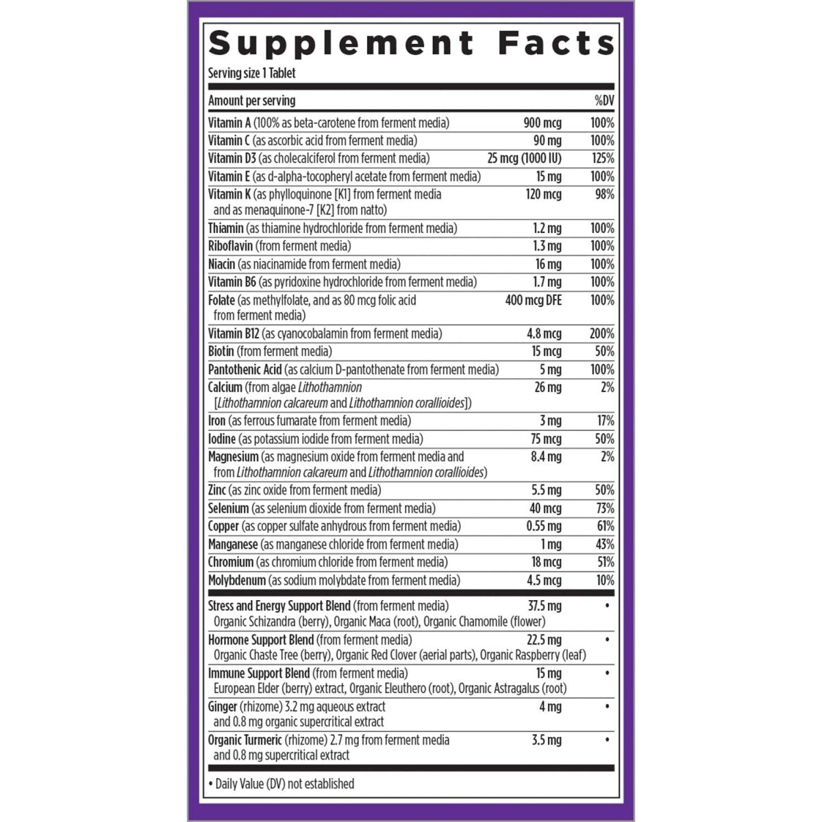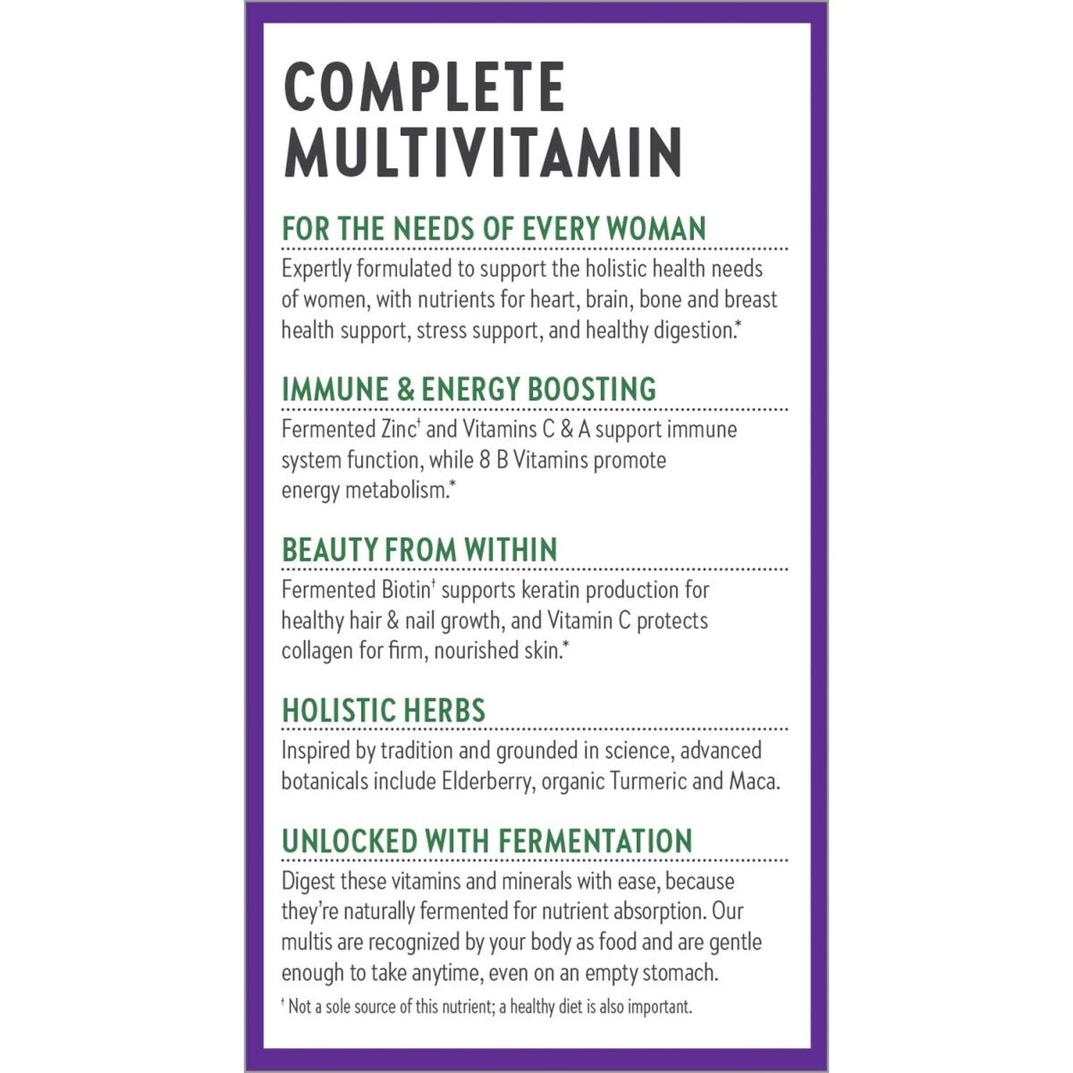 Introducing the New Chapter Every Woman's One Daily β because who has time to swallow a pharmacy's worth of pills every morning? We've distilled the essence of a wellness retreat into a single, easy-to-swallow tablet. It's like yoga, meditation, and a green juice, all in one. This multivitamin is fermented with probiotics, so it's practically a party for your gut, and itβs packed with iron, B vitamins, and Vitamin D3. We've thrown in organic, non-GMO ingredients because Mother Nature deserves a standing ovation, don't you think? Perfect for the woman who does it all and needs her vitamins to keep up. So, go ahead, take on the world. Your secret weapon is just a pill away.