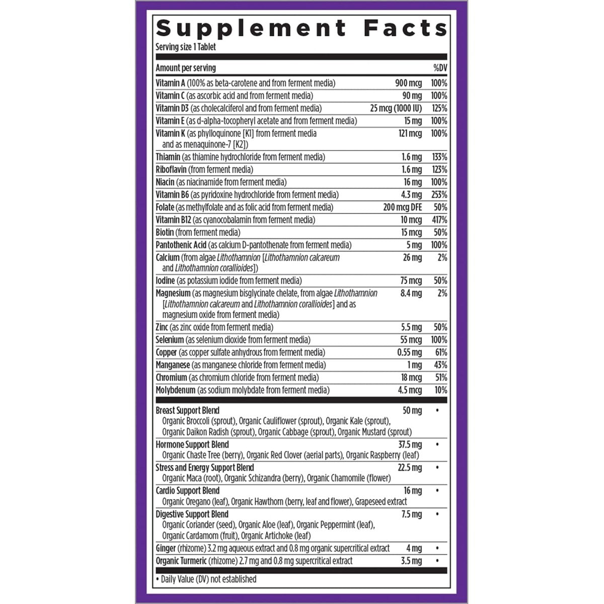 Each tablet is a powerhouse of goodness, designed to promote overall immune, heart, and bone health, and letâs not forget the radiant skin youâll be flaunting. With organic vegetables and herbs, this is the multivitamin that says, "I care about what goes into my body as much as what goes on it."