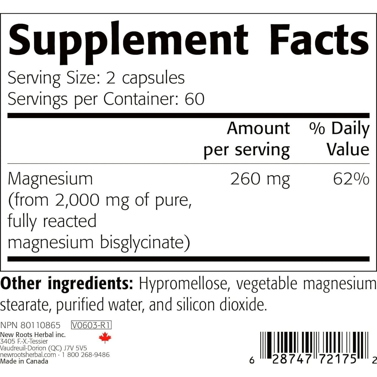 New Roots Herbal Pure Magnesium Bisglycinate 130 mg 120 Capsules
