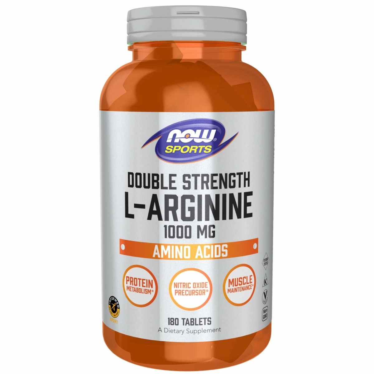NOW Foods Sports Nutrition, L-Arginine Double Strength 1000mg, Nitric Oxide Precursor, Amino Acids, 180 Tablets
