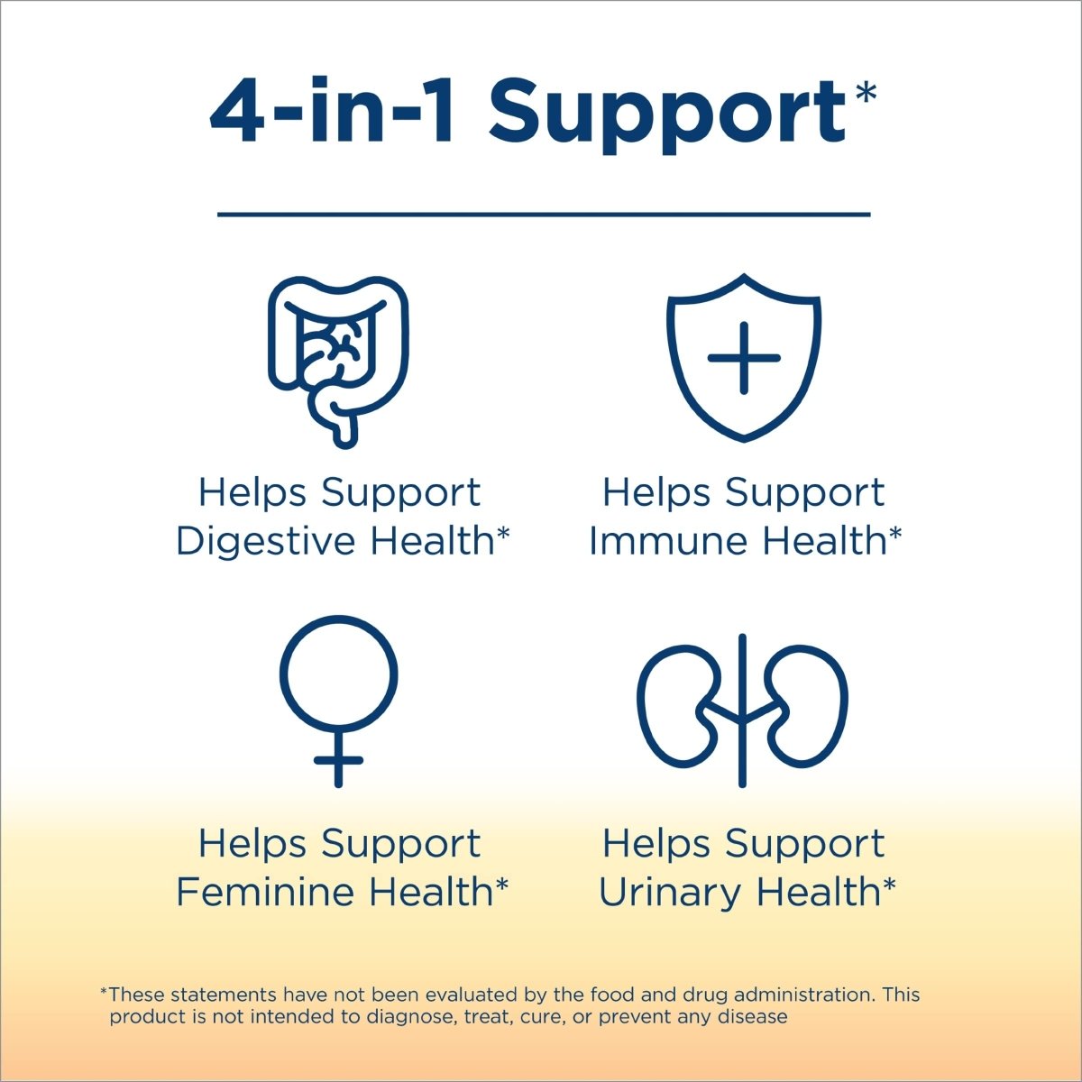 Renew Life Women's Wellness, Women's Care Probiotic is your all-in-one ticket to a fabulous, balanced life—because who has time for anything less? This 4-in-1 probiotic powerhouse supports vaginal, urinary, digestive, and immune health with a guaranteed 50 billion CFU per capsule. That's right, 12 strains of shelf-stable probiotics are working overtime so you don't have to. Whether you're conquering the boardroom or the playroom, these capsules have your back, front, and center!*