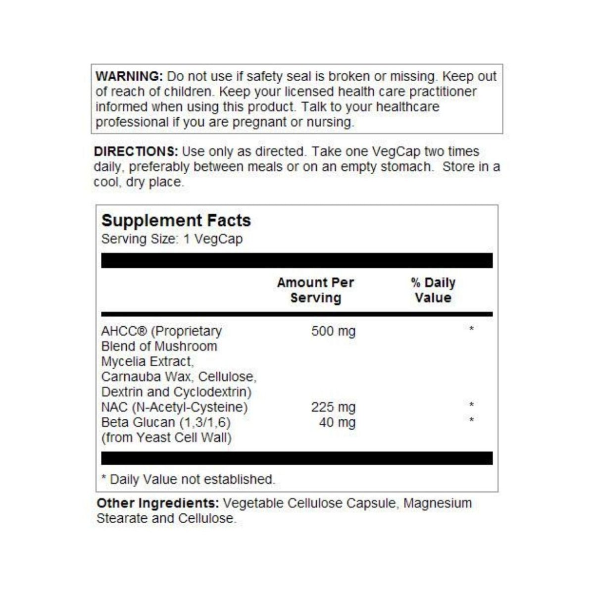 AHCC, derived from the mycelia of shiitake mushrooms, is your immune system's secret weapon, known for its powerful antioxidant properties. N-acetyl cysteine (NAC), a superstar amino acid, is here to support your liver and respiratory health. And let's not forget Beta Glucan, the unsung hero that helps to modulate your immune response.