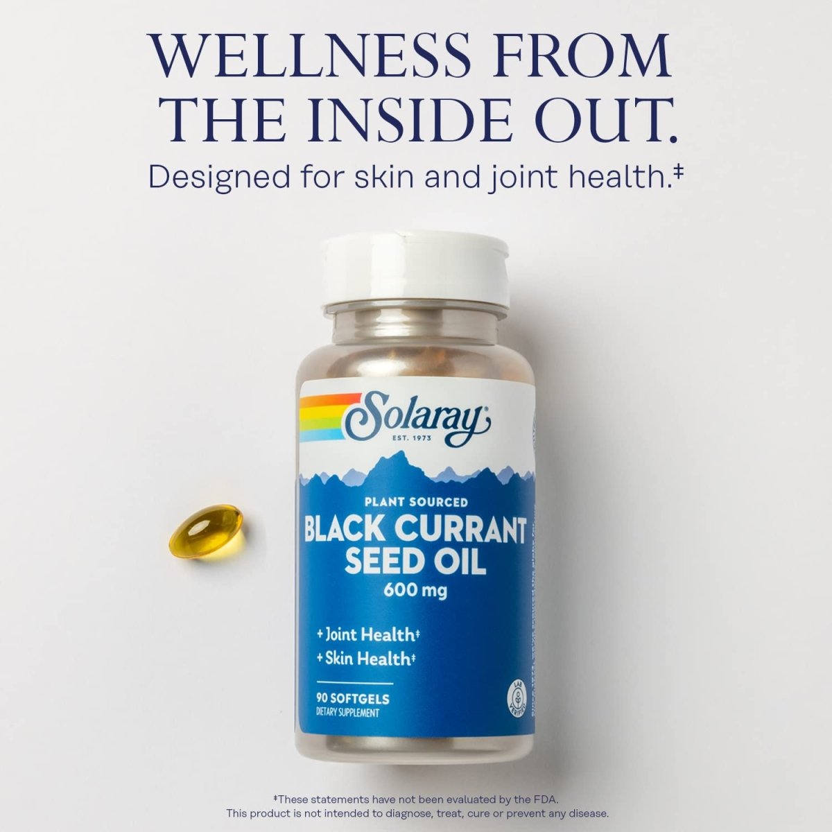 Introducing the SOLARAY Black Currant Seed Oil—your new best friend for glowing skin, luscious locks, and joints that move as smoothly as a well-rehearsed punchline. Each softgel packs a punch with 600 mg of Black Currant Seed Oil, rich in Gamma Linolenic Acid (GLA), designed to support healthy skin, hair, joints, vascular, and immune function. It's like a backstage pass to the fountain of youth, bottled up in a convenient softgel form.