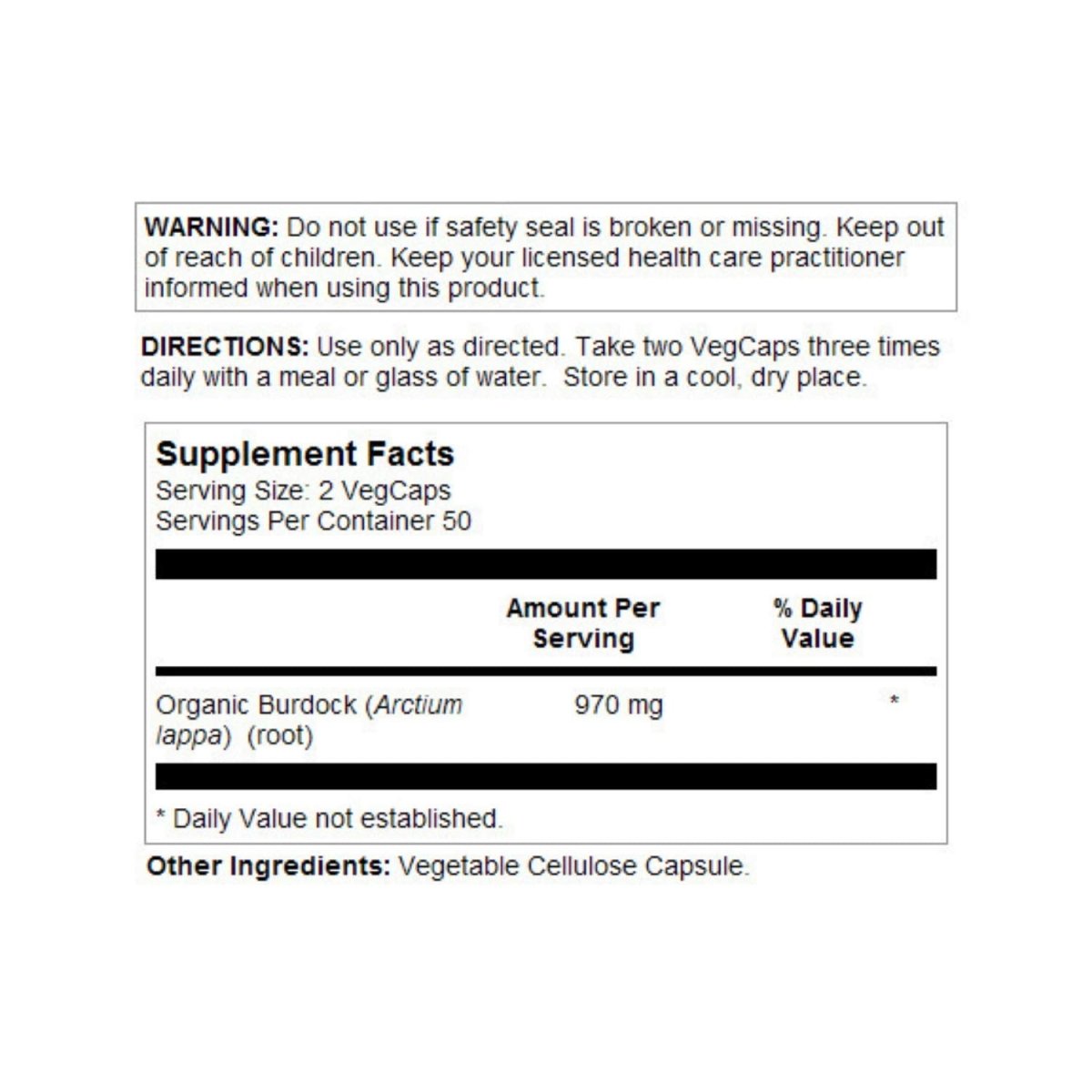 SOLARAY Burdock Root 485 mg | Healthy Liver, Kidney, Digestion, Circulation, Joint & Skin Support | Non - GMO & Vegan | 100 VegCaps - The Oasis of Health