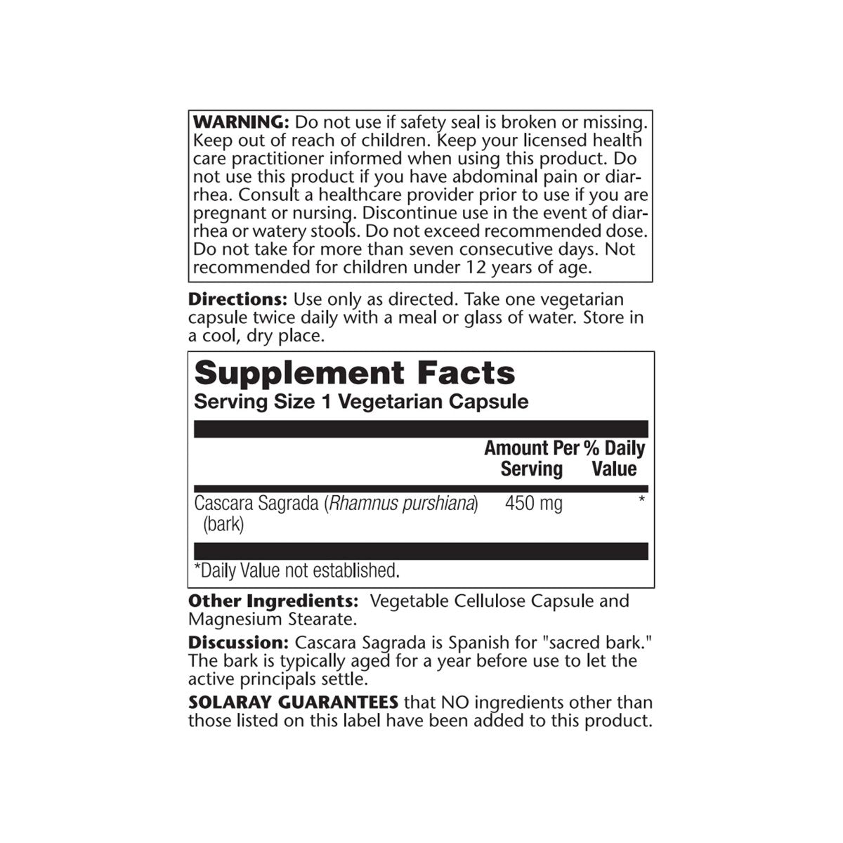 SOLARAY Cascara Sagrada Capsules - Natural Herbal Support for Healthy Bowel Function - 180 Count