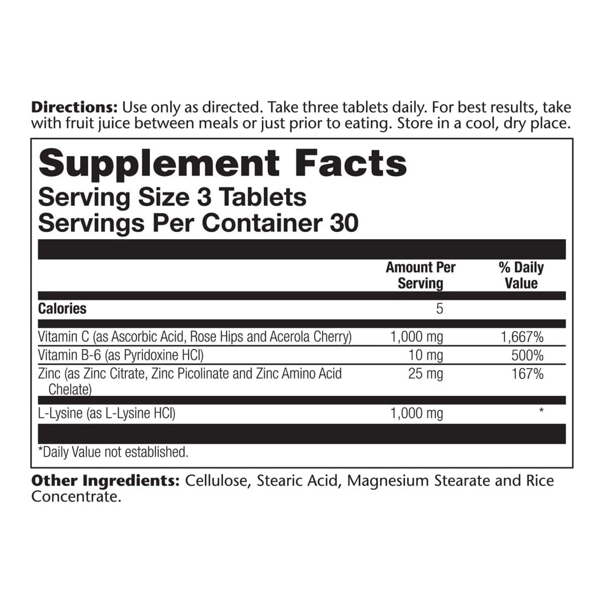 Introducing Solaray L-Lysine, the unsung hero your immune system didn't know it needed. Packed with 90 tablets of pure, unadulterated goodness, this supplement is your ticket to supporting tissue health and a robust immune system. It's like a personal trainer for your cells, minus the yelling and sweat. And for our plant-loving pals, rejoice! This formula is 100% vegan and non-GMO, because we believe in keeping things as natural as a Sunday morning in the park. With 30 servings per bottle, you're set for a month-long journey to wellness. Pop one of these tablets and let your body do the happy dance!