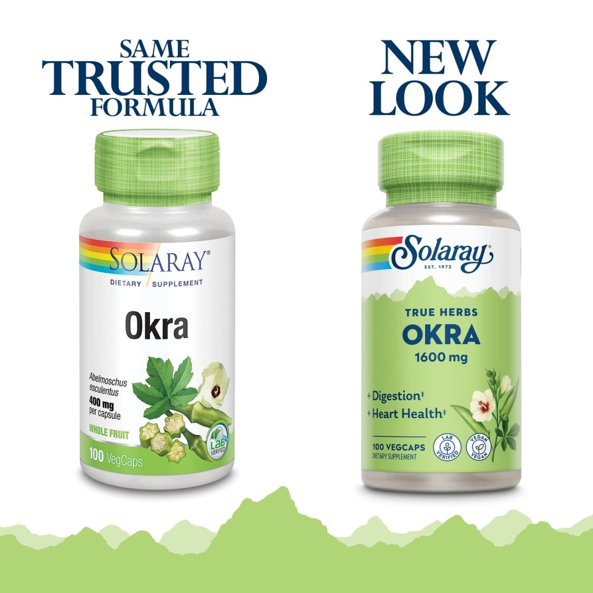 Solaray Okra Fruit 400mg Healthy Digestion & Cardiovascular Function Soluble Fiber Including Gums & Pectins Non - GMO & Vegan 100 VegCaps - The Oasis of Health