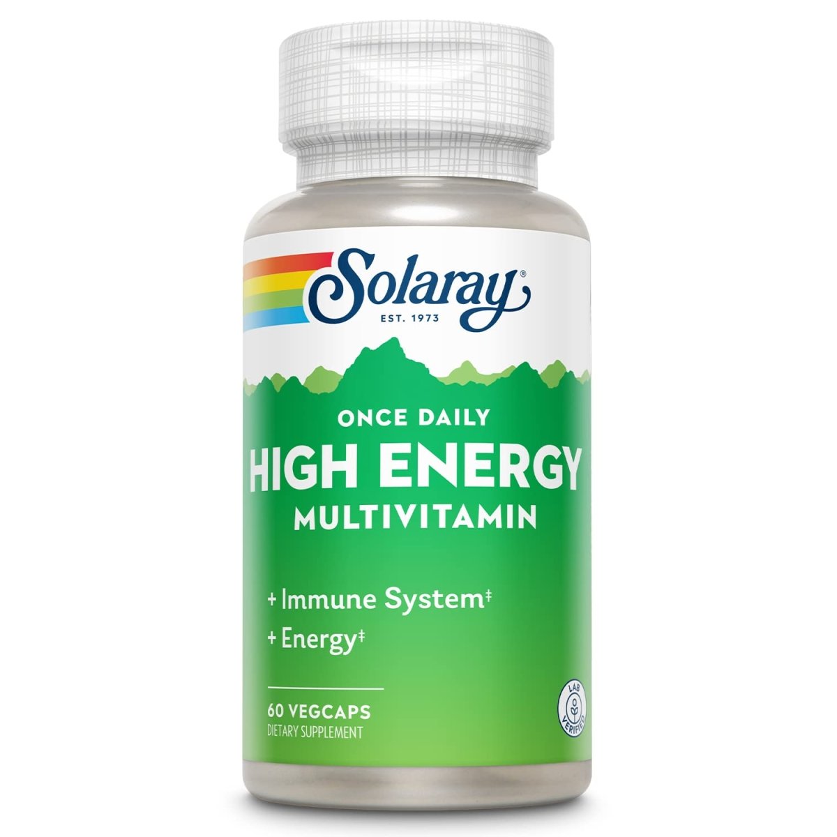 Introducing the SOLARAY Once Daily High Energy Multivitamin, your new secret weapon for conquering the day with the vigor of a caffeinated squirrel. Crafted with a blend of whole food and herb-based ingredients, this multivitamin is designed to support your immune system and boost your energy levels without the crash. Whether youâre a man, a woman, or just someone who wants to feel like they can take on the world, these easy-to-swallow veggie capsules have got you covered. Each bottle contains 60 servings, ensuring youâre ready to tackle whatever life throws your way, one capsule at a time. So why wait? Unleash your inner dynamo today!