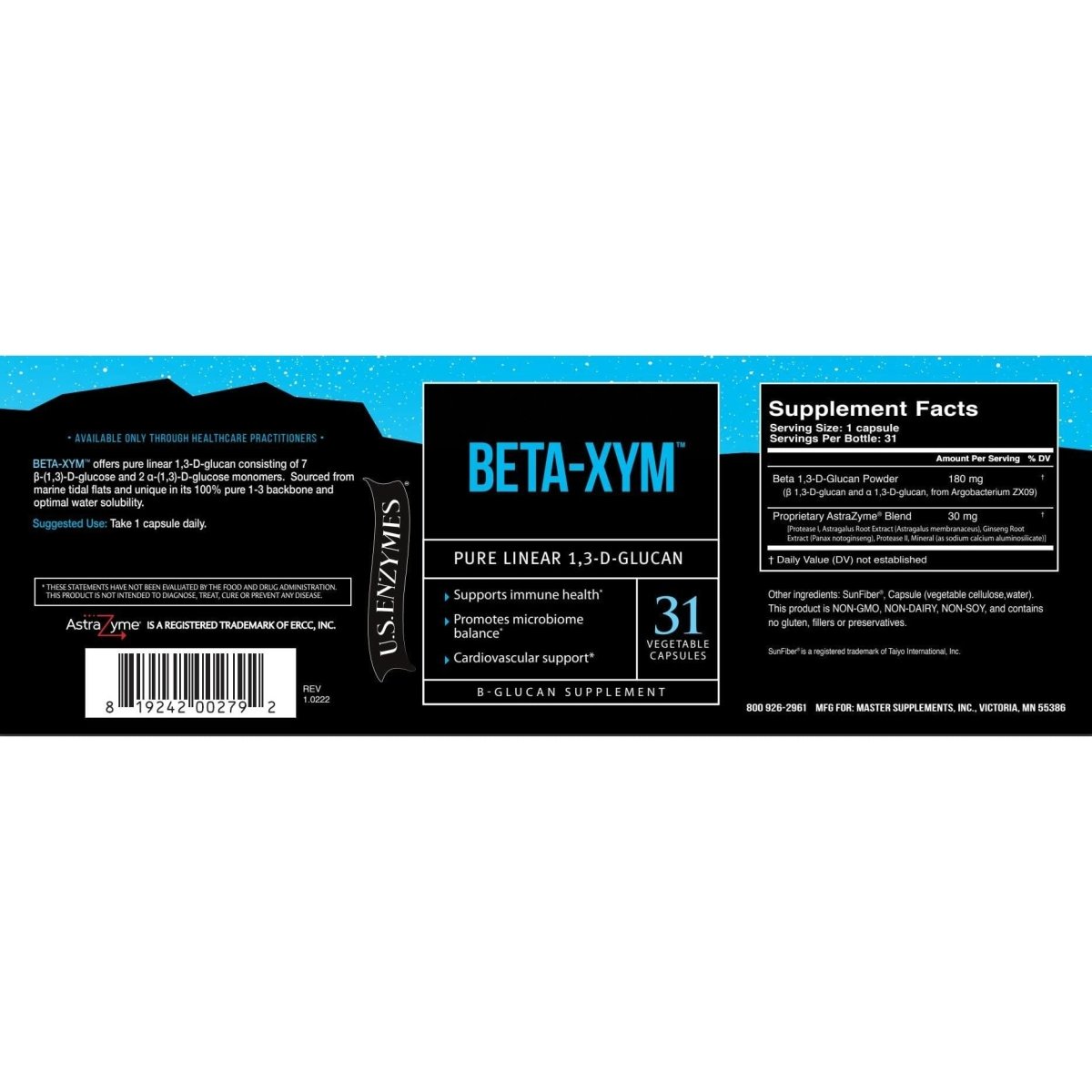 BETAXYM offers pure linear 1,3Dglucan consisting of 7 Γ(1,3)Dglucose and 2 a(1,3)Dglucose monomers. Sourced from microorganisms in marine tidal flats, Betaxym is unique in its 100% pure 13 backbone and optimal water solubility. Supports immune health* Promotes microbiome balance* Cardiovascular support* Dosage: one (1) capsule Dosages per bottle: 31 Recommended usage: To obtain the maximum activity take one (1) capsule daily. Can be taken with or without food, anytime of day. This product is NONGMO, NONDAIRY, NONSOY and contains no gluten, fillers, artificial colors, flavors or preservatives.