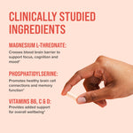 Let's break down the goodies inside: Magnesium L-Threonate, known for its role in supporting cognitive functions, and Phosphatidylserine, a fancy component that plays a key part in cell structure and supports your brain's daily hustle. Together, they're like the dynamic duo of brain nourishment—no capes needed!