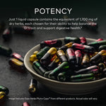 Our 60 vegan liquid phyto-capsules are designed for a 30-day cleanse that helps balance the GI tract and supports digestive health. Think of it as feng shui for your intestines, aligning your inner qi with each carefully crafted capsule.