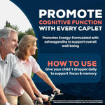 Our formula combines the time-tested wisdom of Bacopa, Ashwagandha, and Ginkgo—ingredients so revered, they might as well have their own TED Talk. Bacopa, the brain-boosting herb, is here to help your child focus like a laser beam. Ashwagandha whispers sweet nothings to your kid's stress levels, and Ginkgo? Well, it’s the brain's personal cheerleader, rooting for memory and concentration like it’s the World Series.