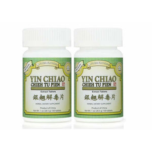 Mayway's Plum Flower Yin Chiao Chieh Tu Extract Tablets available in two bottles each containing 100 tablets. Also called Yin Chiao Plus, Yin Qiao Jie Du Wan, Yin Chiao Chieh Du Wan, or Yin Chiao Chieh Tu Pien, is one of the most well known formulas in the Chinese herbal system. Yin Chiao is highly-regarded for its ability to nourish and strengthen the body. Chinese Medicine suggests taking immediately after the onset of common cold or flu symptoms. Chinese herbalists believe that cold/flu germs remain on the surface for a short period of time after entering the body. It is during this critical time that Yin Chiao can be most effective in reducing body stress.