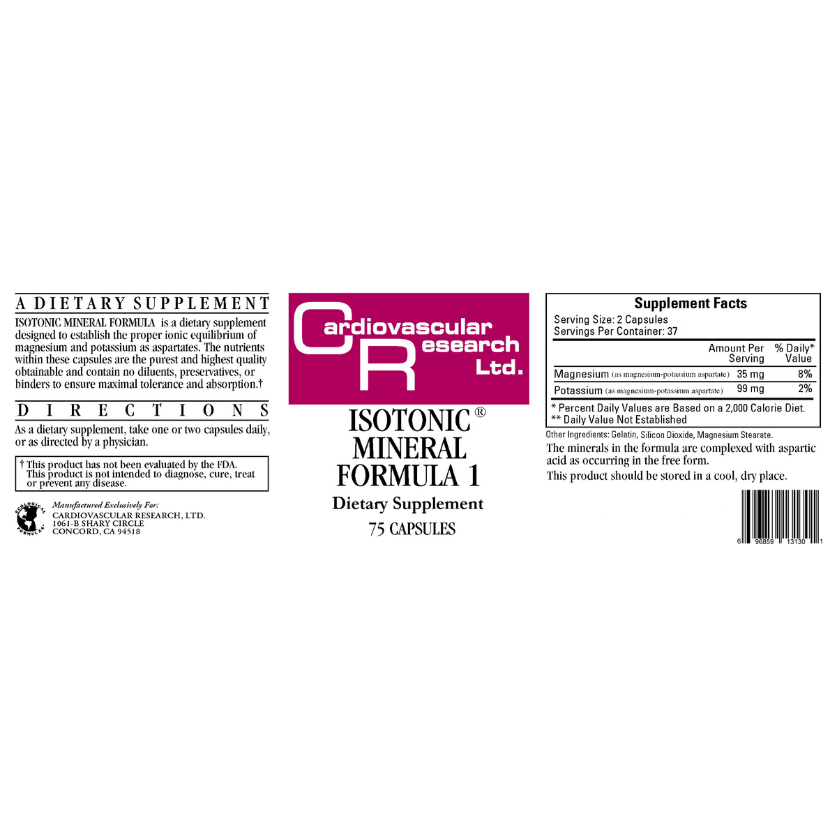 Step right up, folks, and let me introduce you to the Cardiovascular Research Isotonic Mineral Formula 1, the little miracle worker in a bottle. With 75 capsules of pure, unadulterated potential, this formula is like a backstage pass to a rock concert for your heart health. It's packed tighter than Joan Rivers' makeup bag with essential minerals your body craves. Who knew staying healthy could be so glamorous?