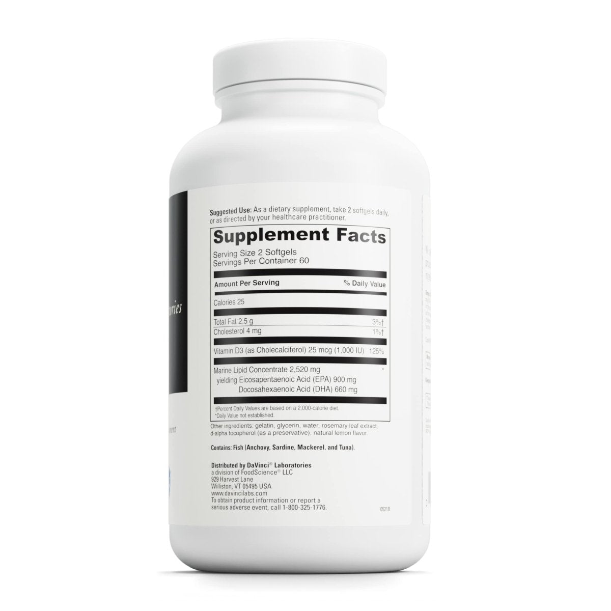 Davinci Labs Omega 3 HP-D 120sg – Dive into a sea of wellness with our high-potency Omega-3 supplement, designed to support heart health, brain function, and overall vitality. Each softgel is packed with pure, premium fish oil, ensuring you get a concentrated dose of the essential fatty acids your body craves.