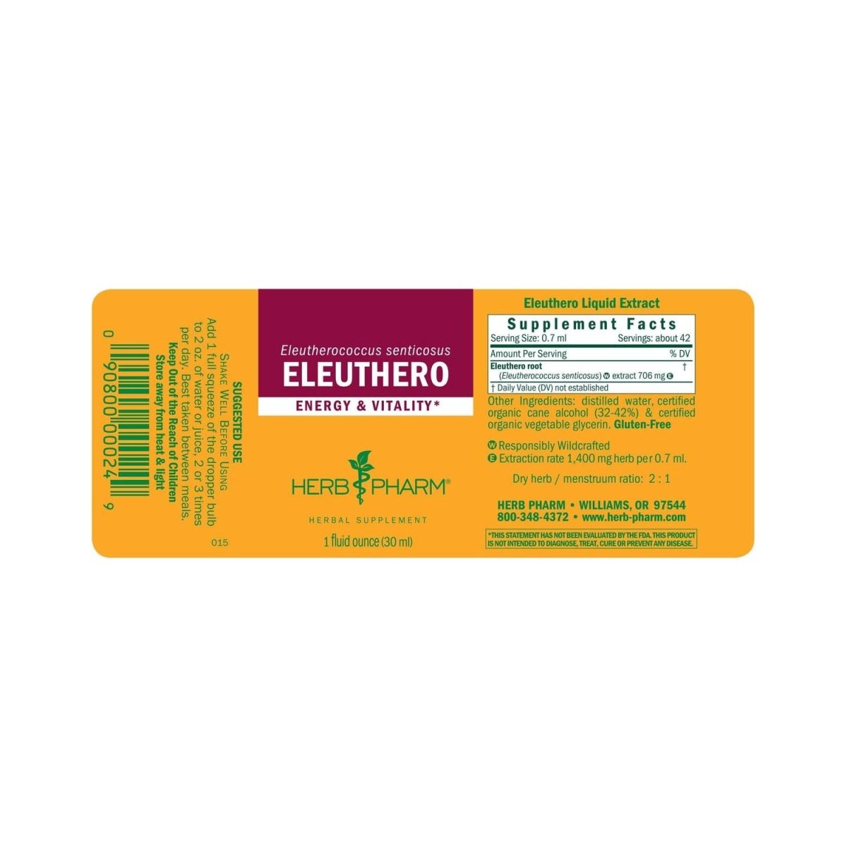 Ingredients: Eleuthero root extract, distilled water, certified organic cane alcohol (40-50%).