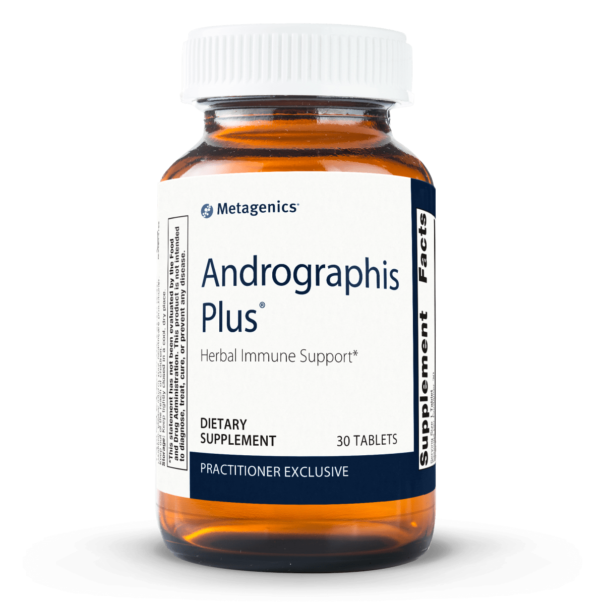 Introducing the Metagenics Andrographis Plus 30 Tablets, now available in a fabulous 2-pack! Because why settle for one when you can double the pleasure and double the fun? This dynamic duo is your go-to for supporting immune health, especially when you're feeling less like a spring chicken and more like a rubber chicken. Each tablet is packed with the goodness of Andrographis, a plant so powerful it could probably bench press a small car. And with Metagenicsâ commitment to quality, you know youâre getting the top-shelf stuff, not that bargain-bin nonsense. So, whether youâre fighting off the sniffles or just looking to keep your immune system as strong as a bodybuilder on a protein shake diet, Andrographis Plus is your trusty sidekick. It's like having a personal trainer for your immune system, minus the yelling. Get ready to say goodbye to those pesky seasonal challenges and hello to feeling fabulous!
