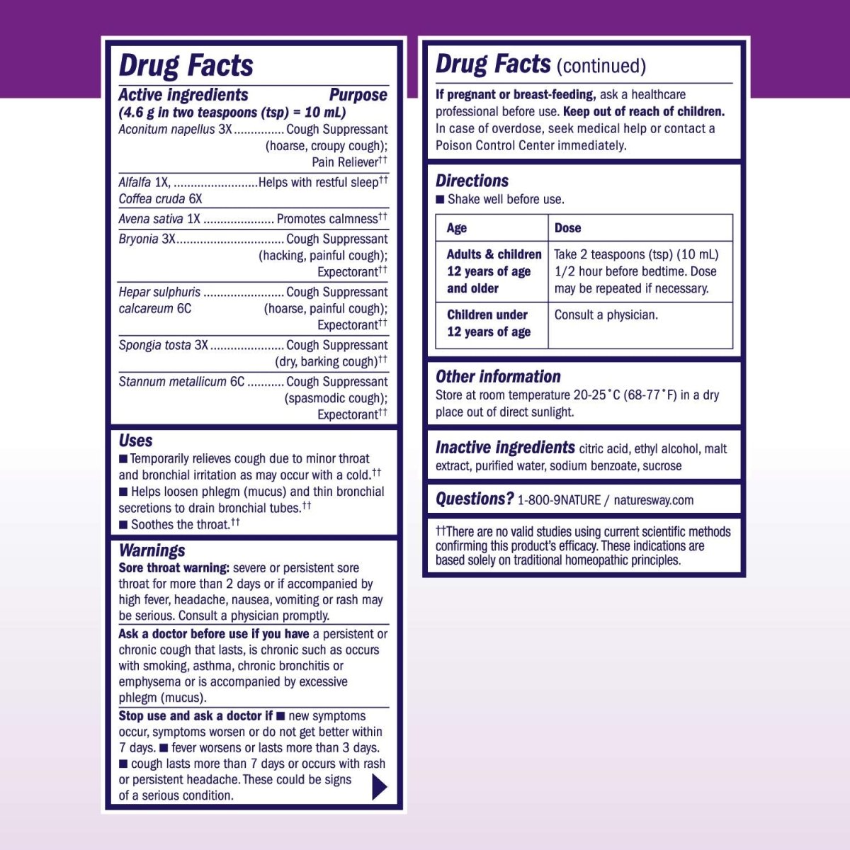Introducing the Nature's Way Boericke & Tafel Nighttime Cough & Bronchial Syrup, your new bedside companion for those nights when your cough just won't quit. This 4 fl. oz bottle is packed with a soothing formula designed to suppress that pesky cough and promote restful sleep. It's like a lullaby in a bottle, minus the singing—because let's face it, no one needs to hear that at 2 a.m.