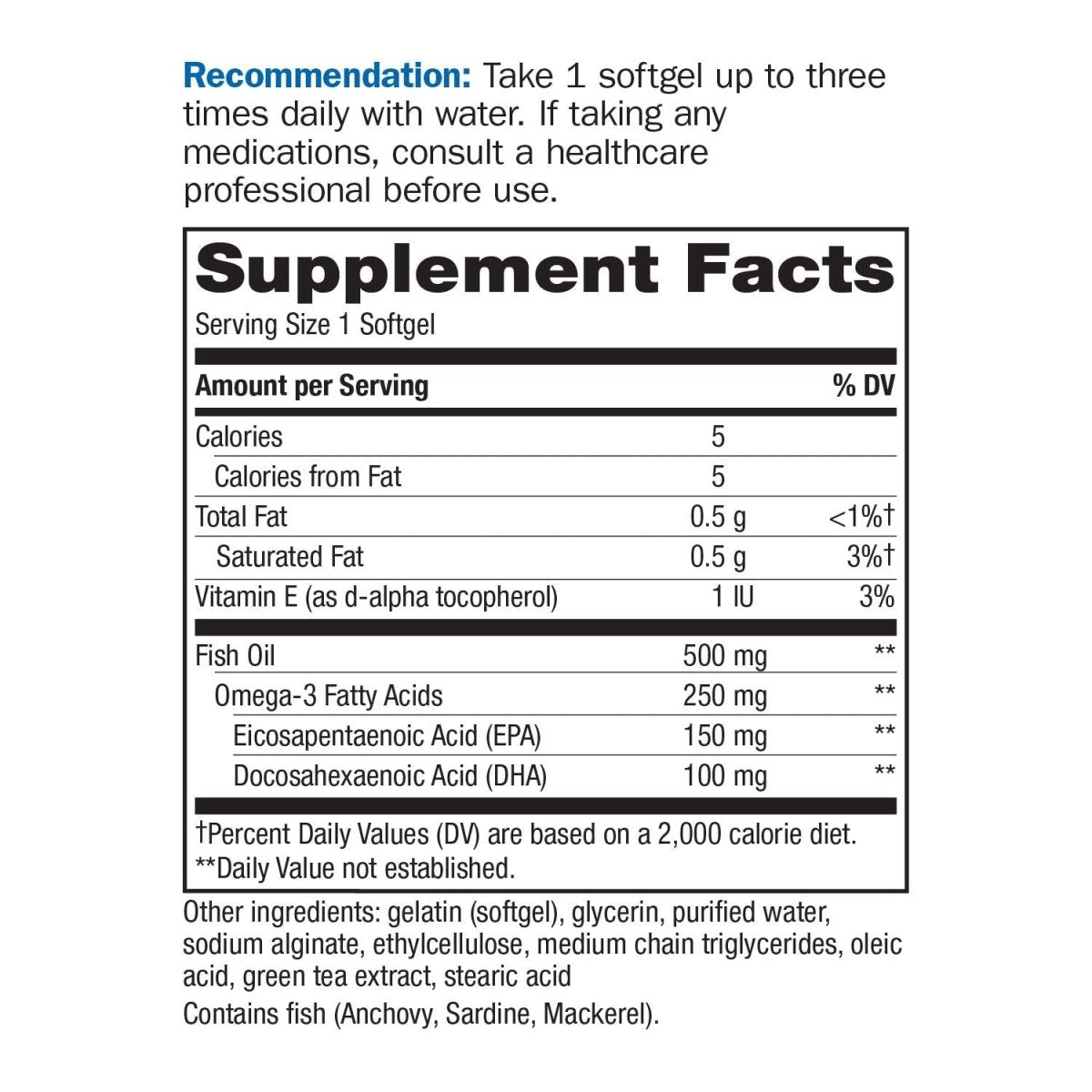 Nature's Way Fisol 50% EPA and DHA Enteric-Coated Fish Oil – the perfect catch for those who want all the benefits of fish oil without the fishy aftertaste. Say goodbye to fishy burps and hello to a fresher you! Each softgel is enteric-coated to ensure that the fish oil is released in the intestines, not the stomach, providing optimal absorption of essential omega-3 fatty acids. With 50% EPA and DHA, these softgels are your heart’s best friend, supporting cardiovascular health and maintaining healthy triglyceride levels. And with 180 softgels, you’re set for the long haul. Dive into a healthier lifestyle with Nature's Way Fisol!