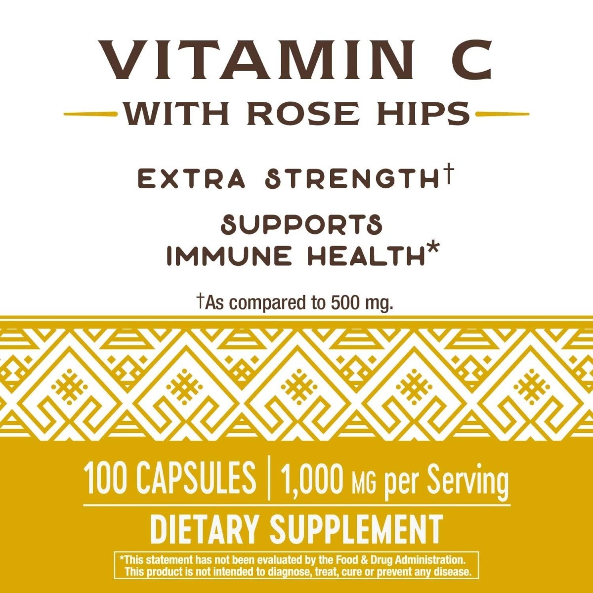 Introducing Nature's Way Vitamin C with Rose Hips Extra Strength – because who said staying healthy can't be a bit glamorous? Packed with a whopping 1000 mg of Vitamin C per serving, this little powerhouse is your ticket to a robust immune system and radiant skin. The added rose hips? Think of them as the cherry on top, offering an extra layer of antioxidant support. Whether you're fending off seasonal sniffles or just want to keep your skin looking like a million bucks, this blend has got you covered. So, go ahead, indulge in the citrusy goodness and let your health shine!