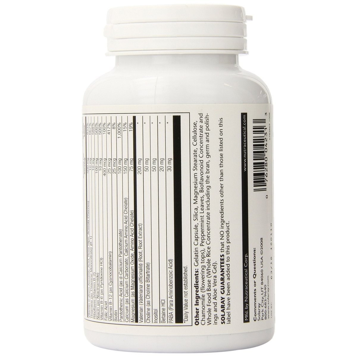 Solaray B - Stress PM Supplement | Comprehensive B - Vitamin Complex with Relaxation Support | 120 Capsules 04231 - The Oasis of Health
