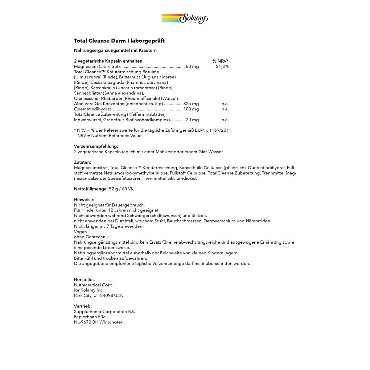 SOLARAY Total Cleanse Colon, Veg Cap (Btl-Plastic) | 60 Count