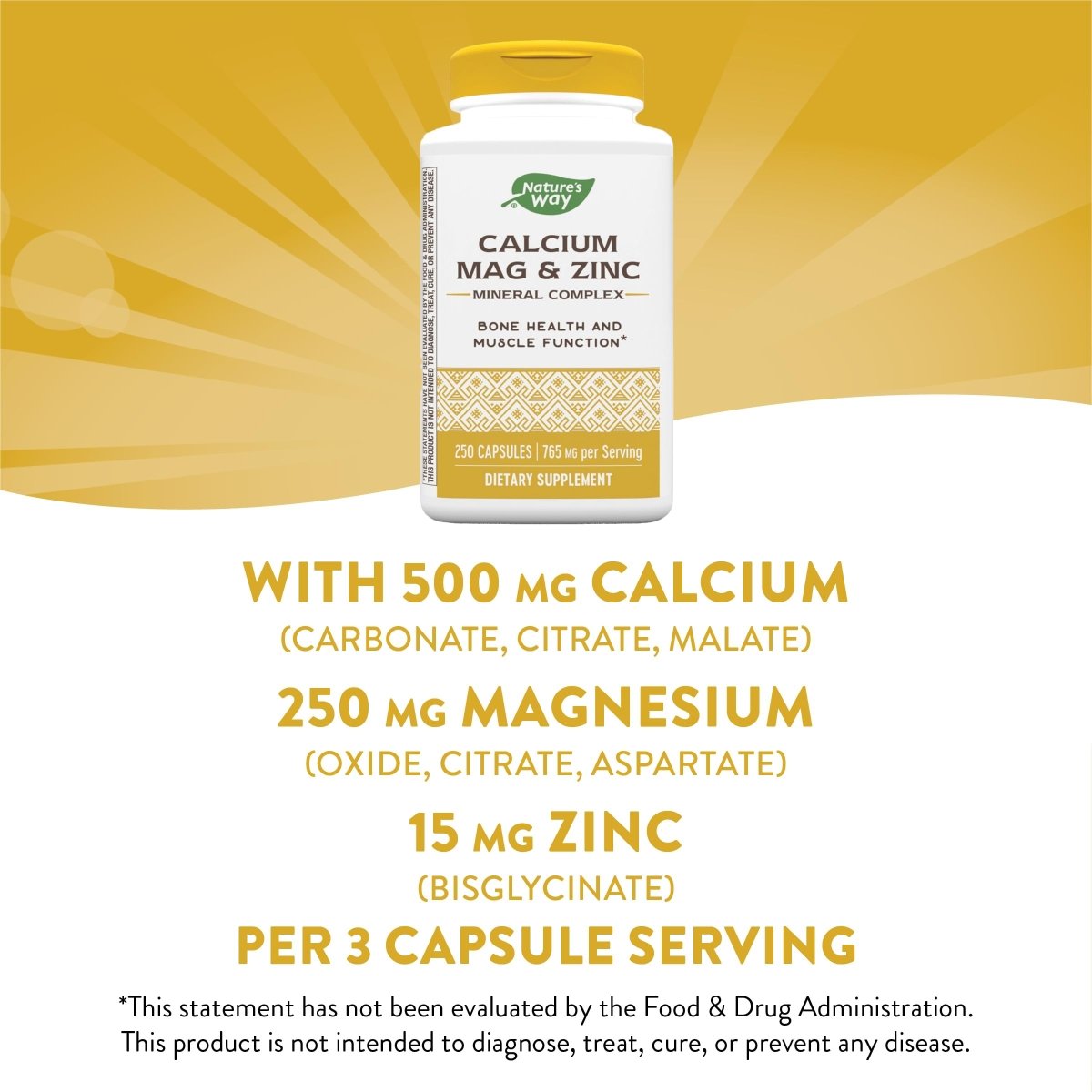 Introducing Nature's Way Calcium Magnesium & Zinc Capsules β because who said you can't have your cake and eat it too? Well, not literally, but with our powerhouse trio of Calcium, Magnesium, and Zinc, your bones will feel like they're dancing the cha-cha while your immune system stands guard like a bouncer at an exclusive club. Each capsule is like a VIP pass to the health benefits party, where strong bones and a fortified immune system are the guests of honor!