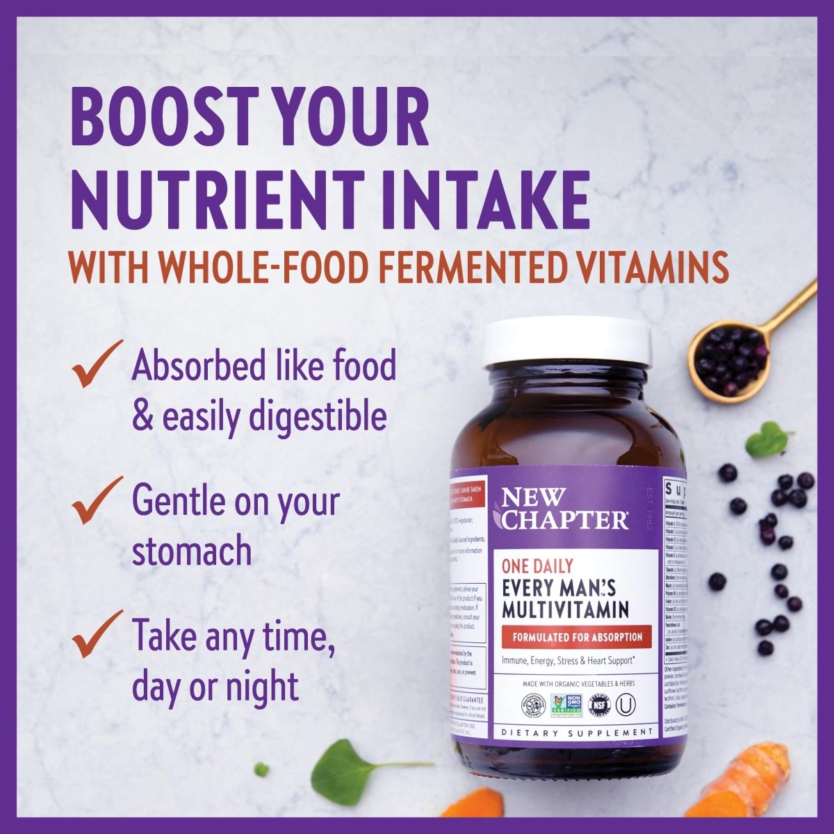 Introducing New Chapter Every Man's One Daily â 72 Tablets, your one-stop shop for keeping the man of the house in tip-top shape! Think of it as the Swiss Army knife of multivitamins, minus the corkscrew, but with all the essential nutrients a modern man needs to conquer the worldâor at least the backyard BBQ.