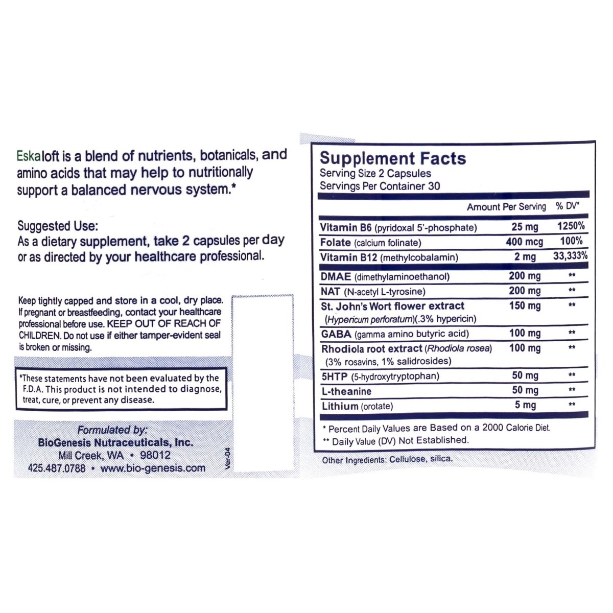 Nutra Biogenesis Eskaloft—because who couldn’t use a little lift now and then? Packed with a powerful blend of B vitamins, Rhodiola, and St. John’s Wort, this supplement is like a Swiss Army knife for your mental health and stress response. Whether it's juggling a job, family, or trying to remember where you left your keys, Eskaloft is here to help you keep your cool. And the best part? It's gluten-free, so you can stay zen without worrying about any gluten gremlins sneaking into your system. Just remember, while Eskaloft is ready to be your sidekick in the battle against stress, it’s not a substitute for professional advice—always consult with your healthcare provider. (FDA Disclaimer: