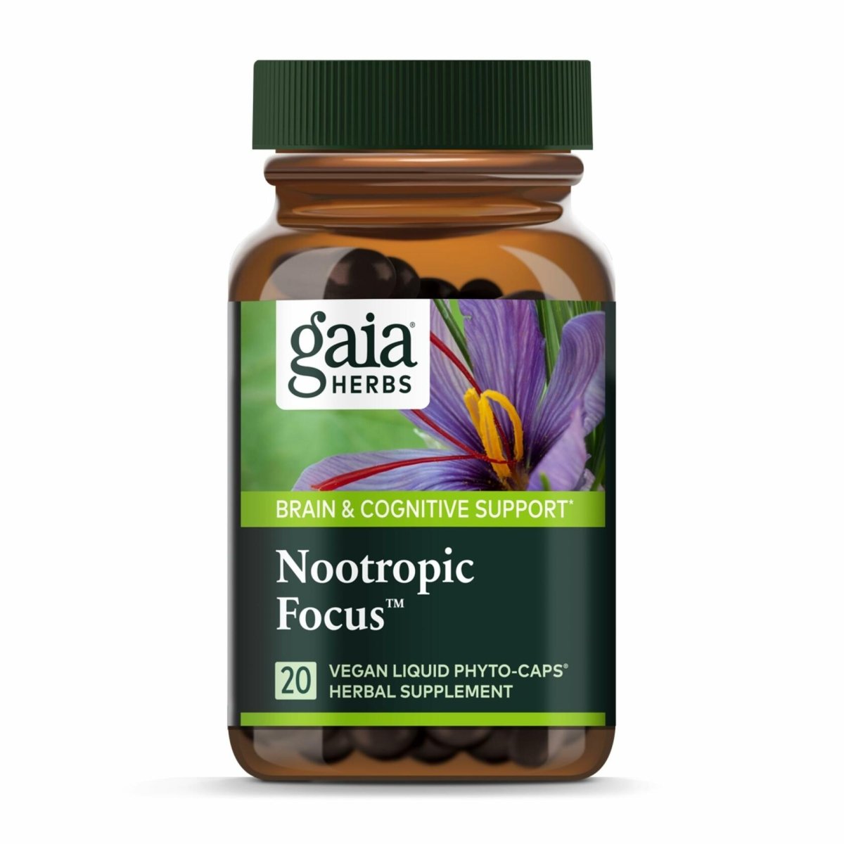 A targeted formula for healthy concentration, Gaia Herbs nootropic focus helps you keep up with the competing demands of a fast-paced life. For the do-it-all parent balancing work and home duties, or the active professional looking for support for the next big idea, nootropic focus helps maintain overall cognitive health so you can thrive in your busy life. Made with a revitalizing blend of saffron, lemon Balm, and Spearmint. Saffron is traditionally used to support overall brain health, promoting attention and reflection. Lemon Balm supports mental alertness and focus, and Spearmint is invigorating and uplifting for the mind and body and helps maintain mental performance.